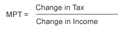 The marginal propensity to pay tax (MPT) is the fraction of extra income that is paid in tax: