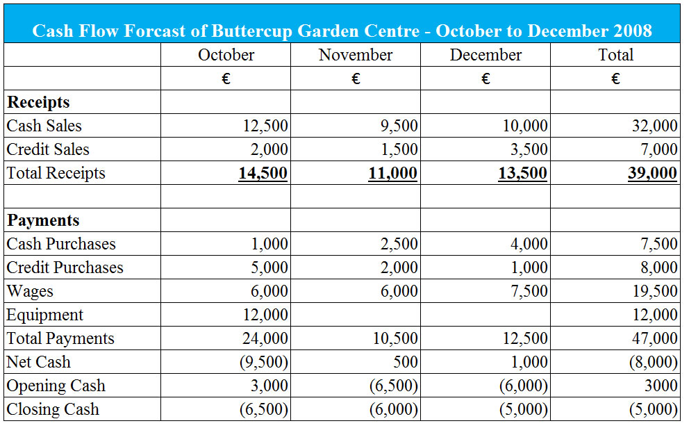 In September 2008 Buttercup Garden Centre prepared the following Cash Flow Forecast: